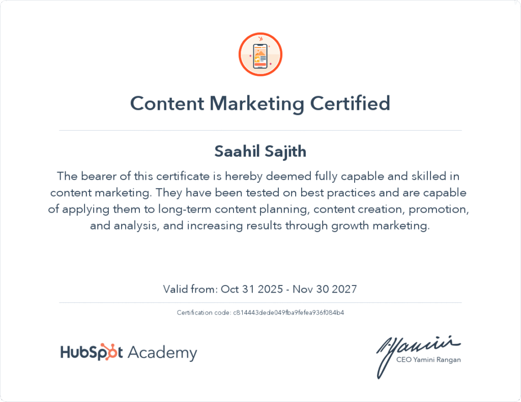 I'm Saahil Sajith, a graduate of Christ University in Bengaluru with a degree in Bachelor of Business Administration (Marketing). I'm passionate about creating meaningful digital experiences by fusing strategy, analytics, and creativity. In my opinion, marketing is about telling stories that inspire, connect, and convertit's not just about visibility.